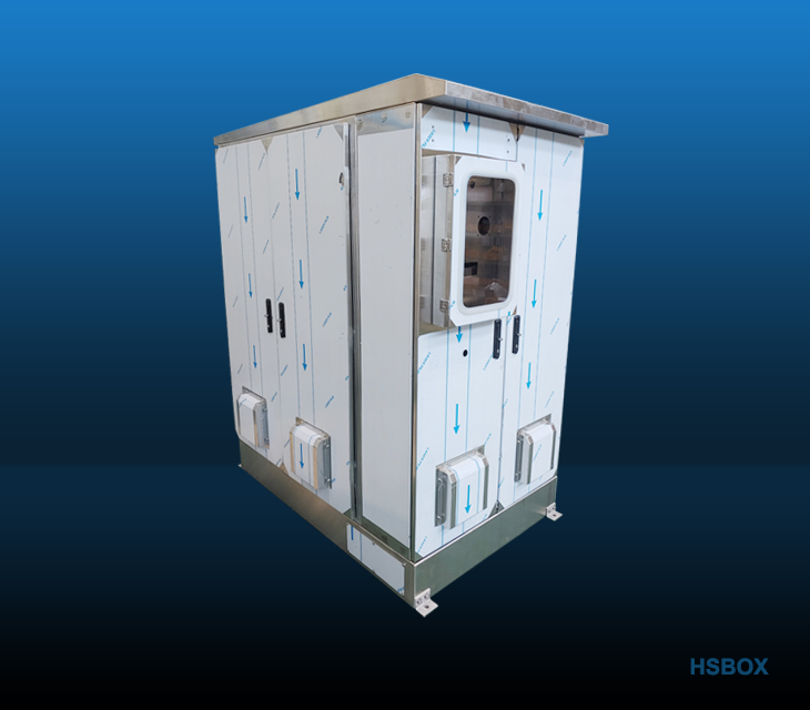 컨트롤 판넬이 한 면의 형태로 열반된 전기외함입니다.