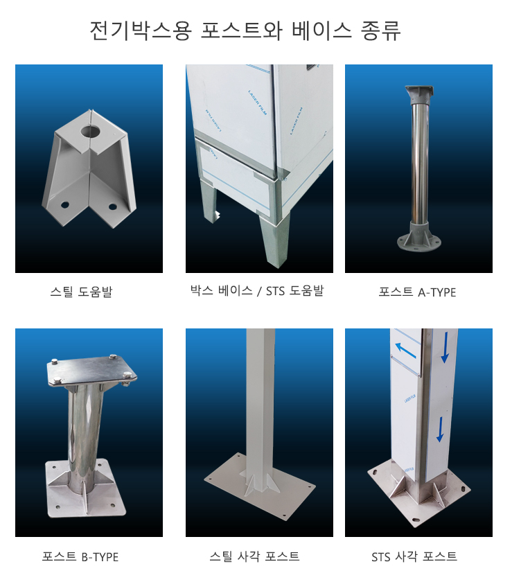 전기박스 및 전기외함에 사용되는 도움발, 포스트, 베이스는 박스 크기 및 설치