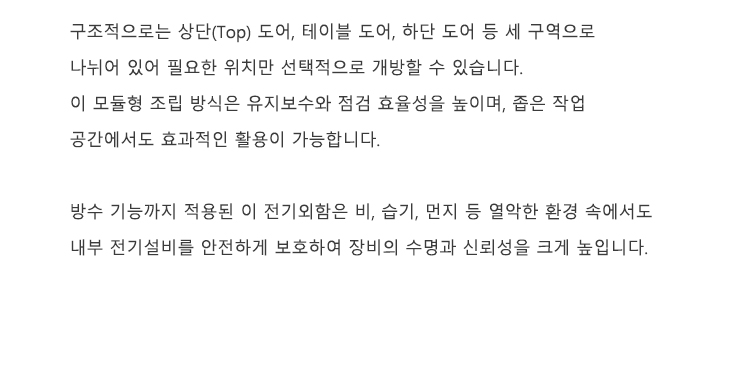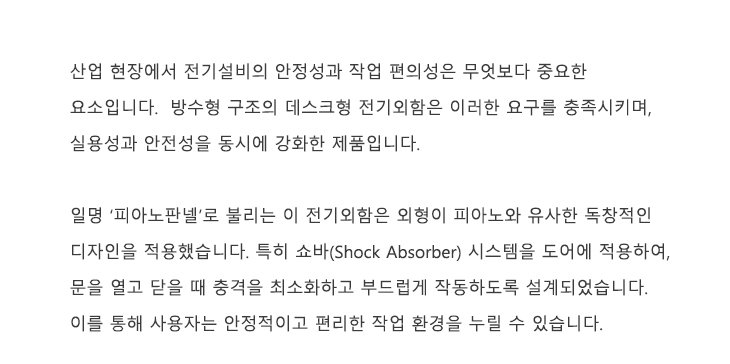산업 현장에서 전기설비의 안정성과 작업 편의성은 무엇보다 중요한