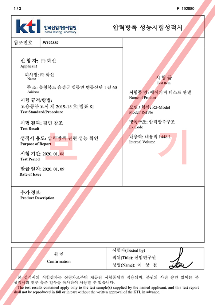 ![]() 양압외함 (압력방폭 성능시험성적서) |