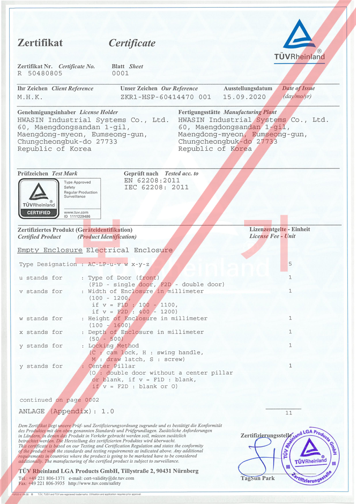 ![]() ![]() 고급 방수,방진박스 AC-LP TUV Rheinland Certificate AC-LP 라인란드 인증서 입니다. |