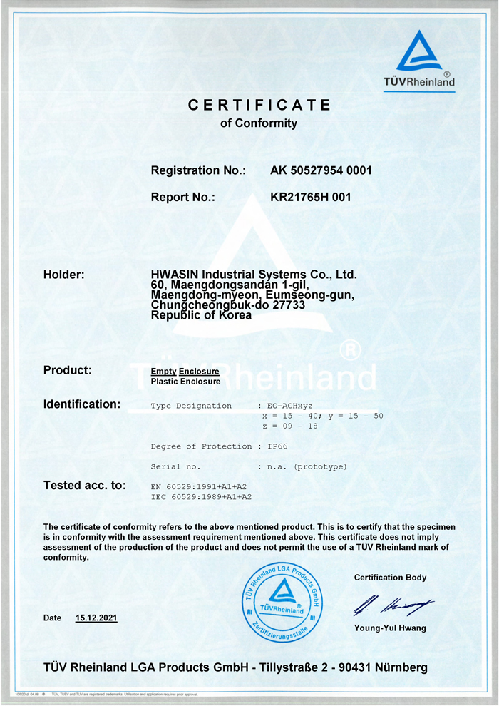 ![]() 플라스틱 하이박스 EG 시리즈 COC 증명서 |