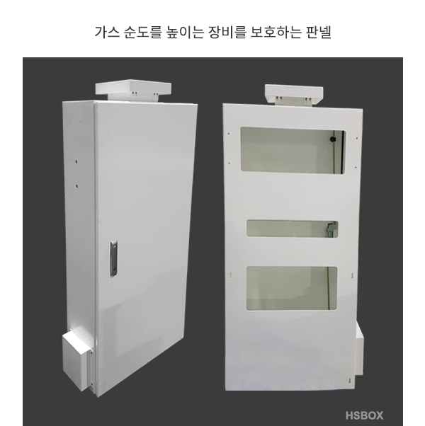 내부에 실린더, 밸브, 배관 등이 설치되며, 가스를 정제하여 순도를 높이는 장비를 보호하는 판넬