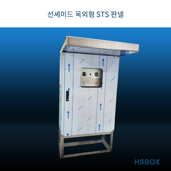 옥외형 외함으로 판넬 상부에 대형 지붕을 얹혀 선셰이드 역할을 하도록 제작