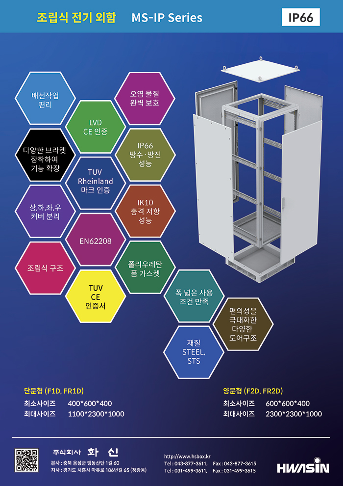 MS-IP 시리즈는 조립식 구조의 인클로저로 전기 스위치기어, 콘트롤 기어 및 기타 전기기기를 내부에 장착할 수 있으며, 전기기기를 쉽게 설치할 수 있도록 상판, 하판, 측면판, 뒷판을 분리할 수 있습니다. 또한 인클로저 간의 열반과 다양한 브라켓을 장착하여 기능 확장을 할 수 있습니다. 3차원 프레임 구조로 제작되어 높은 강성으로 뒤틀림이 없으며, 도어캐치 방식의 잠금장치를 사용을 하면 절곡 프레임 바깥쪽에 설치되기 때문에 도어 면적을 넓게 사용할 수 있다는 장점이 있습니다. 롤러 로드바 방식의 잠금장치는 프레임 안쪽으로 설치가 됩니다. |