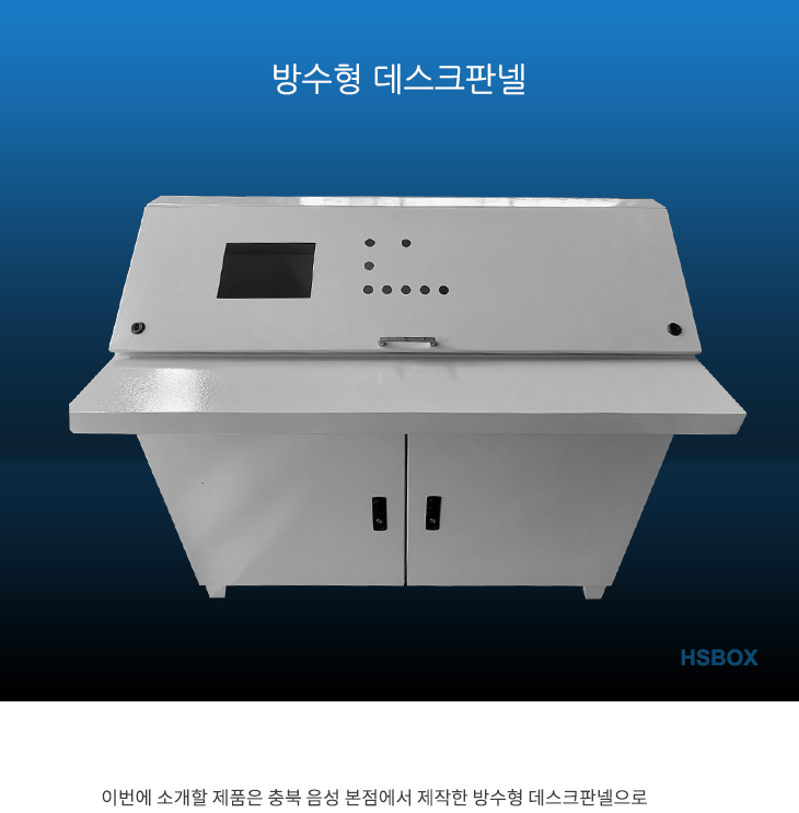 이번에 소개할 제품은 충북 음성 본점에서 제작한 방수형 데스크판넬으로 컨트롤부 상부 도어와 하부 도어에 방수, 방진 시스템이 적용되어 뛰어난 밀폐를 실현합니다. 안전 및 사용 편의성을 위해 도어 안쪽에 쇼바를 설치하여 부드럽게 여닫을 수 있으며, 상부 테이블을 넓게 하여 운용 시 필요한 도..