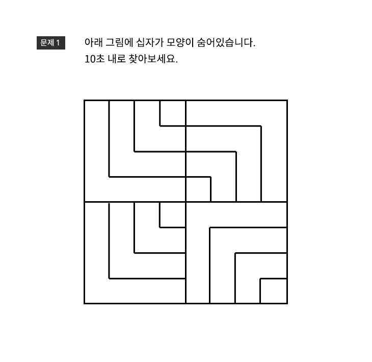 아래 그림에 십자가 모양이 숨어있습니다. 10초 내로 찾아보세요.