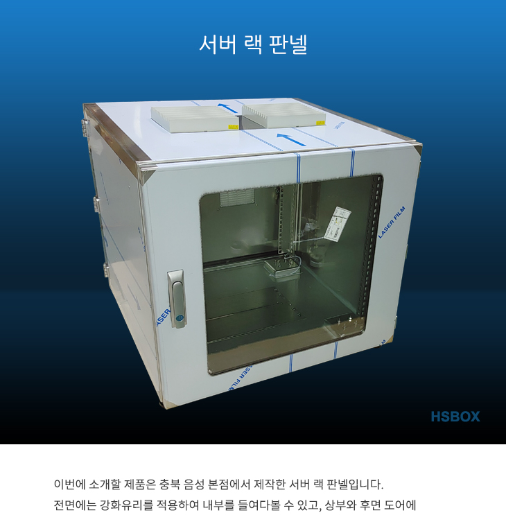 이번에 소개할 제품은 충북 음성 본점에서 제작한 서버 랙 판넬입니다. 전면에는 강화유리를 적용하여 내부를 들여다볼 수 있고, 상부와 후면 도어에 필터를 적용하여, 깨끗하고 신선한 공기 유입과 배출을 할 수 있습니다. 판넬 내부에 서버용 랙 마운트와 선반을 적용하여 원하는 위치에 설치할 수 있으며, 하..