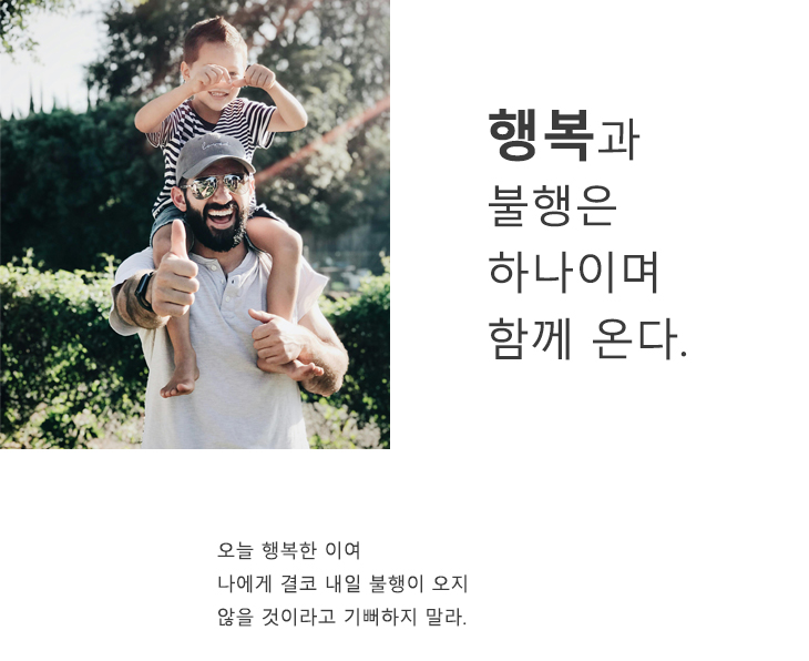 오늘 행복한 이여 나에게 결코 내일 불행이 오지 않을 것이라고 기뻐하지 말라. 오늘 불행한 이여 그대에게 내일 반드시 행복이 미소 지으며 달려올 것을 의심하지 말라. 행복할 때 불행을 준비하고 불행할 때 행복을 맞을 여유를 가져야 할 일. 행복할 때 불행을 염려하고 불행할 때 행복을 기억하라.