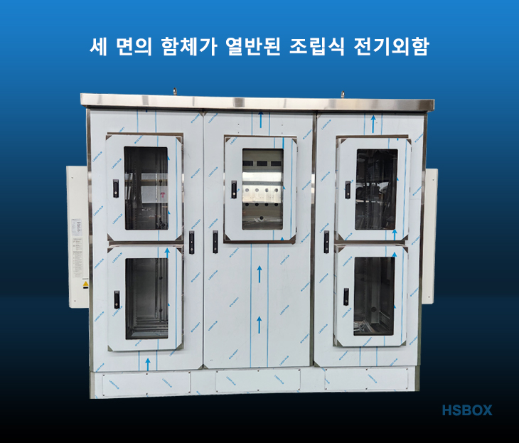 세 면의 함체가 열반된 조립식 전기외함 - 202402