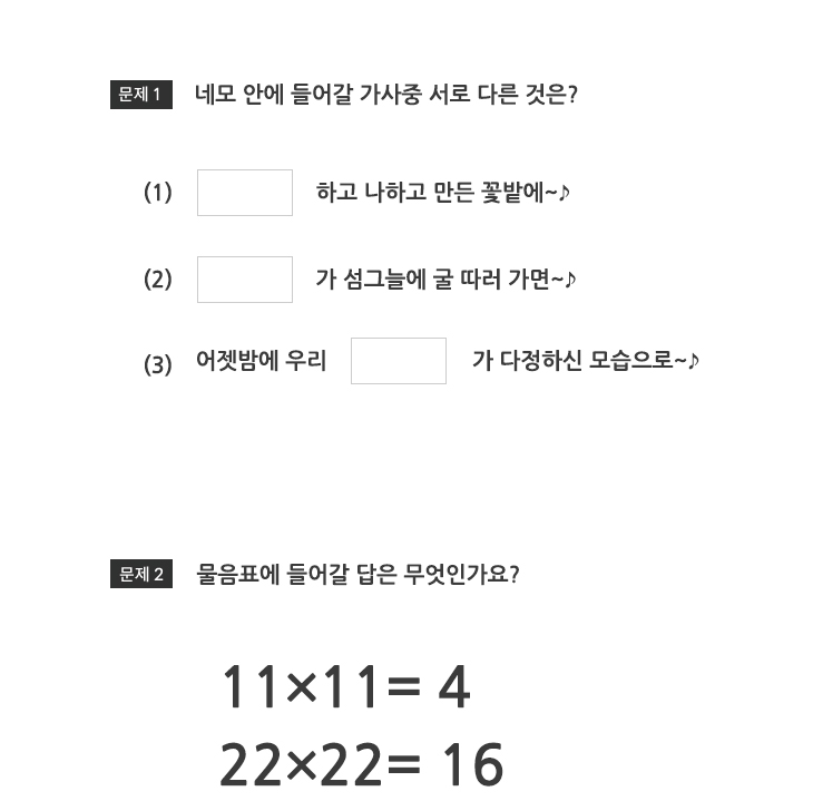 네모 안에 들어갈 가사중 서로 다른 것은?
