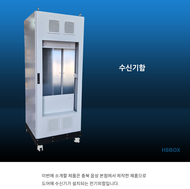 이번에 소개할 제품은 충북 음성 본점에서 제작한 제품으로 도어에 수신기가 설치되는 전기외함입니다. 도어 상/하부에 판넨베그 팬필터를 설치한 다음 온도조절기와 연결하여, 외함 내부의 열이 설정한 온도에 도달했을 때 자동으로 팬이 작동하도록 설계하였습니다.외함 내부 공기를 배출하면 하단의 ..