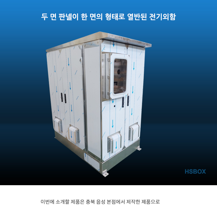 두 면 판넬이 한 면의 형태로 열반된 전기외함 - 202302