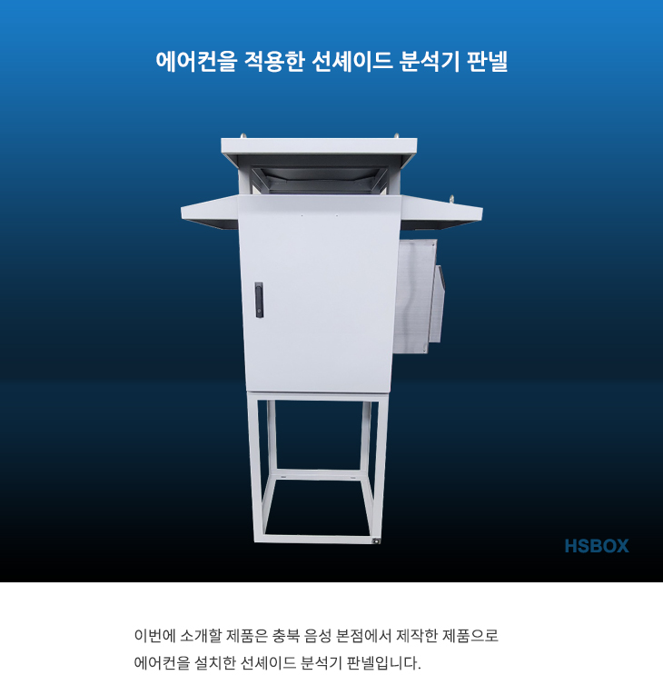 이번에 소개할 제품은 충북 음성 본점에서 제작한 제품으로 에어컨을 설치한 선셰이드 분석기 판넬입니다. 설치되는 환경의 온도 변화에 따른 분석에 오차가 발생하는 것을 최소화하기 위해 선셰이드 역할을 하는 지붕을 적용하고, 앵글 베이스를 이용하여 판넬 높이를 올렸으며, 내부 온도 유지를 위해 에어..